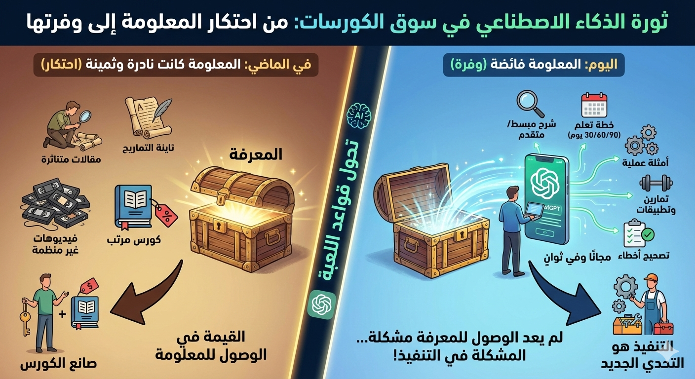 الذكاء الاصطناعي لم يقتل سوق التعليم بل كشف نقطة ضعفه كشف أن معظم الكورسات كانت قائمة على تجميع معلومات متاحة أصلًا… لكن في شكل منظم