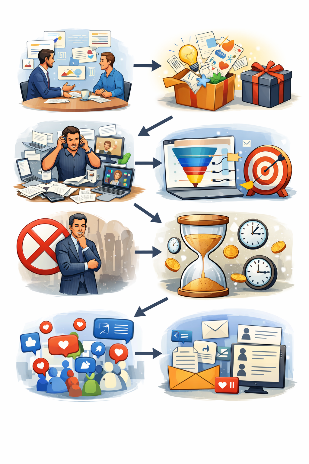بينما وجود نظام (فانل مبيعات) يحول كل ده إلى عملية قابلة للتكرار بدون تدخل مباشر منك.